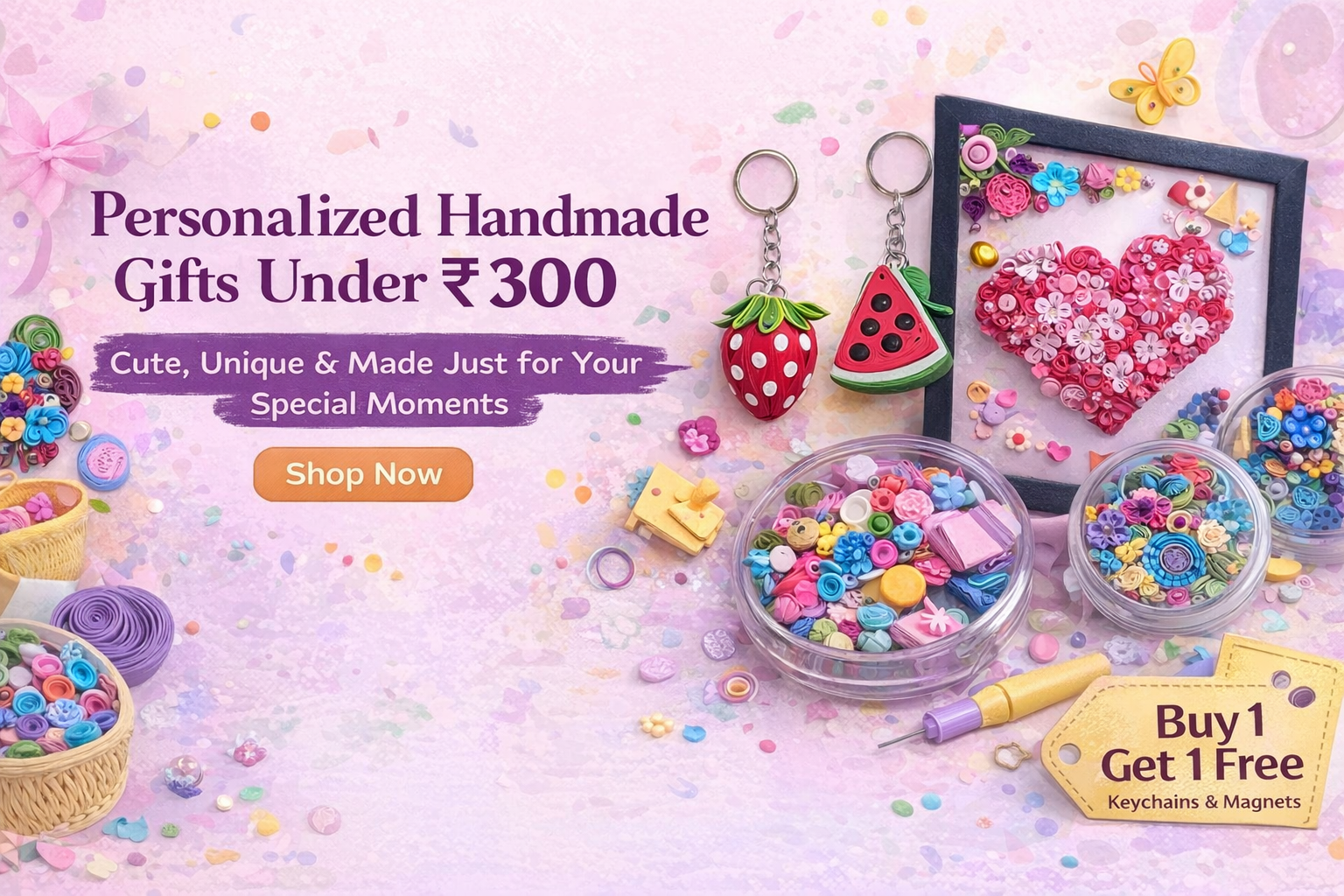 Vibrant Handmade Quilling Heart Keychain – Customizable & Unique (Set of 1)