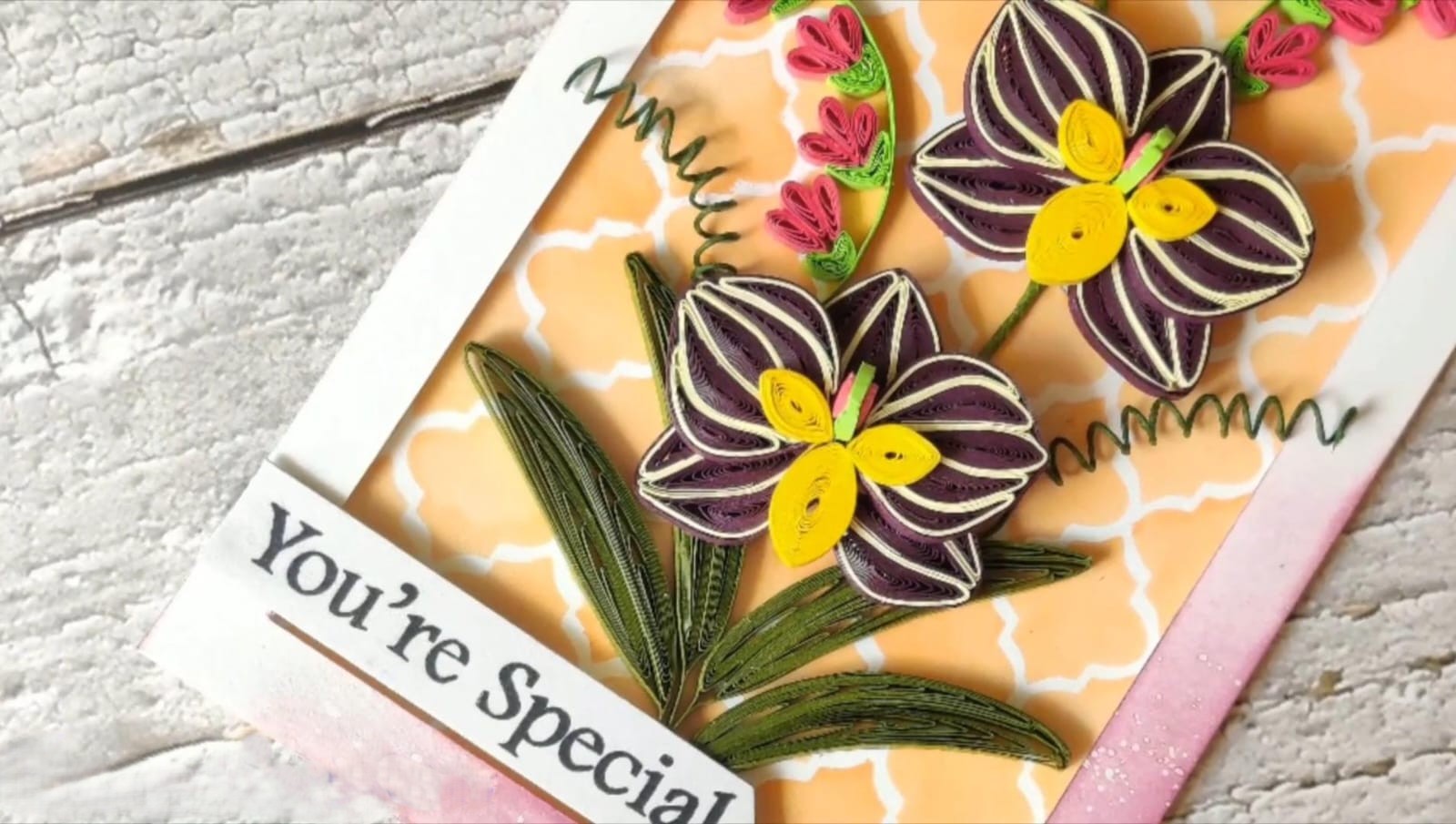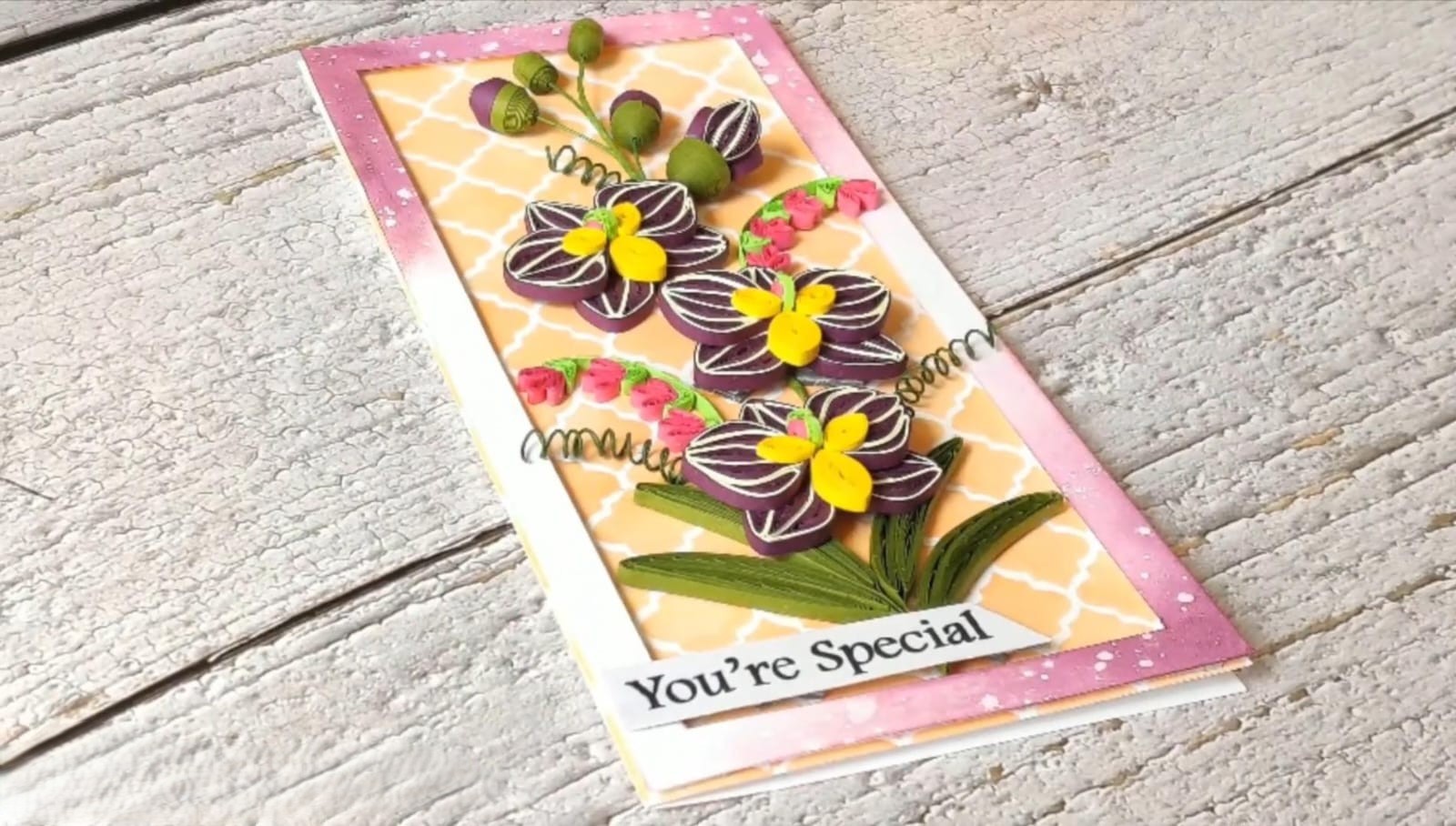 One of the most special aspects of this card is its handmade nature. Each Quilling Orchid Flowers Card is individually crafted, which means no two pieces are exactly the same. These slight variations add uniqueness and make every card truly special.